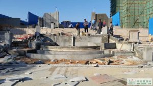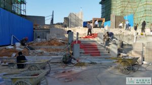 增城市江山时代花园景观绿化工程由广东华美霖园林景观工程有限公司承接,以下是现场正在施工中的场景: 旱喷广场施工: 景墙施工: 园路铺装: 步梯施工: 跌级水池施工: