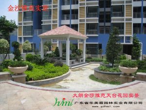 由东莞园林公司承建的大朗金莎雅苑3000平方米屋顶花园景观工程,通过凉亭、亲水平台、小溪、雕塑、水景墙、喷泉等充满生活气息的元素,营造出一个舒适美观宜居的屋顶绿化工程。![]() |